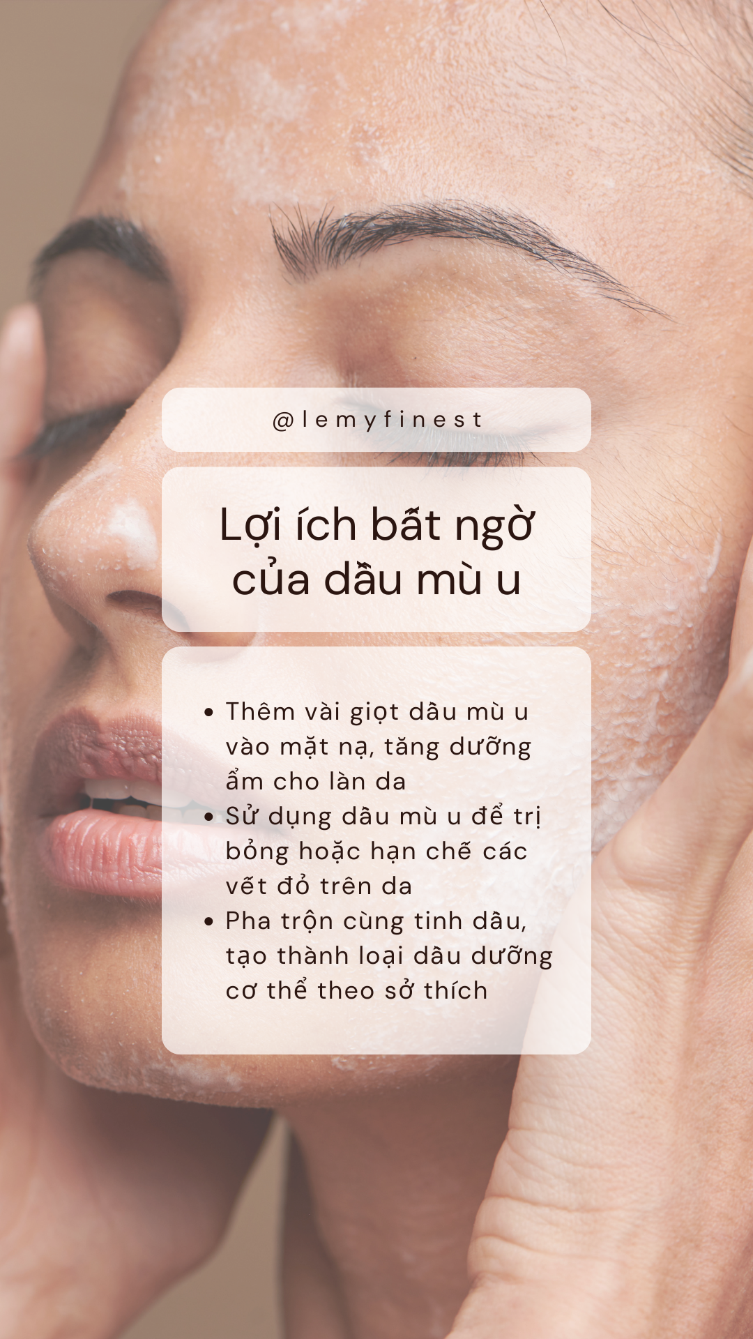- Thêm vài giọt dầu mù u vào mặt nạ, tăng dưỡng ẩm cho làn da